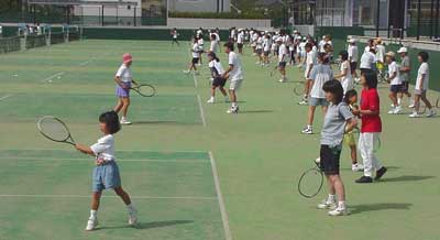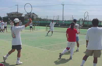 国広コーチによる講習その1。見本ストロークと説明。
