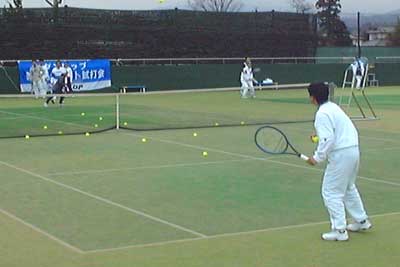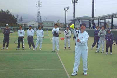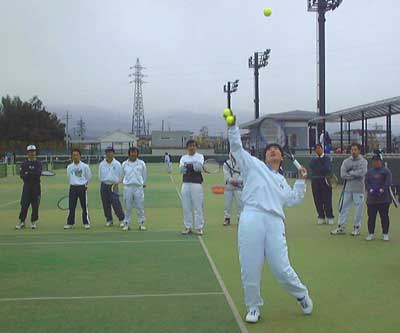 サーブの打ち分けかたについての講習。熱心に聞きました。