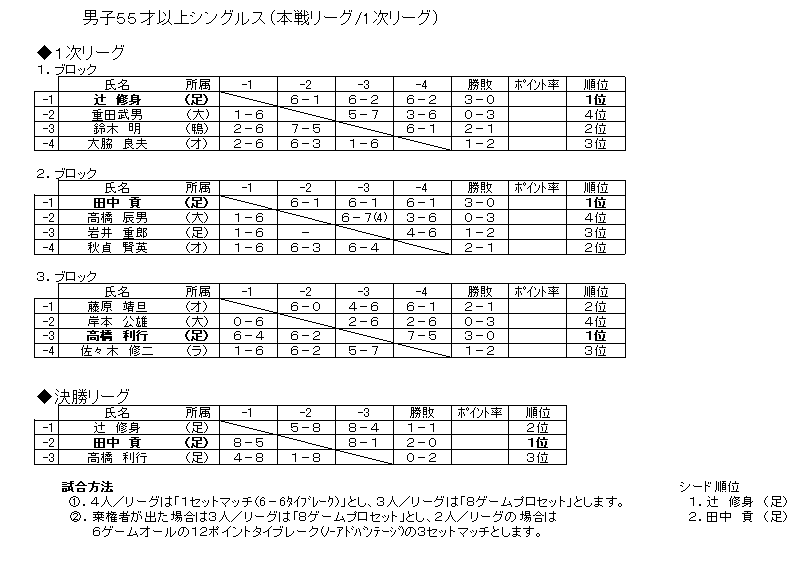 男子55才以上1次リーグ、2次リーグ