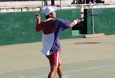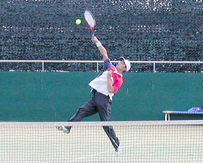 大石選手のミスをしないテニスが優勢で6−3と大石が先取した。 第2セットにはいり、神部が準決勝の疲労から足が動かなくなったが、 ダウンザラインへのエースをきめるなどで、6−2ととってファイナルセットへ。 しかし、神部の足の消耗は激しく、ほとんど走れない状態。大石は、無理にボールを追わず 淡々とボールを打ち返し、6−1でとり、大石が優勝。5連覇を達成した。 |
