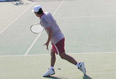 神部は、立ち上がりから丁寧なストロークを展開。一進一退の攻防がつづいた。 5−4とリードした神部だったが、再度安部が逆転し6−5。ここで神部のサービスゲーム。 サービスダッシュを含むネットプレーを積極的に展開し、タイブレークへ。 タイブレークでもネットプレーを的確に決めた神部が第1セットを7−6で先取した。 第2セットも一進一退の攻防が続き、神部が5−4でリード。両者ともに足にけいれんがきはじめていた。 ジュース(ノーアド)となったポイント。神部のマッチポイントだったが、パッシングショットはアウト。 さらに5−5でもジュースとなりやはり安部がとり、7−5で安部がセットカウントをタイに持ち込んだ。 ファイナルセットは、両者ともに足のけいれんで動くことができず、苦しい試合展開。 5−3神部リードでむかえた第9ゲーム。神部のサービスゲームを、30−40とリードされたが、 サービスダッシュで安部のリターンはアウト。再びマッチポイントを握ったが、 勝負をかけて思い切りよく打ったセカンドサーブはフォールト。5−4と安部が粘りを見せた。 両者ともに消耗しきった展開は、続く第10ゲーム、神部が最後の力を振り絞ってとり、 3時間を越えた試合にようやく決着をつけた。 |