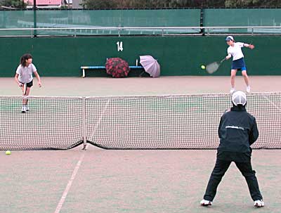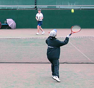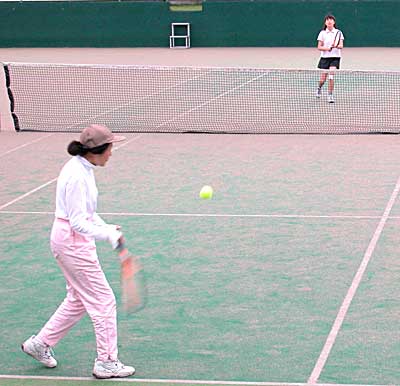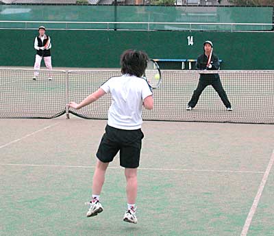 太田・藤村組の、コースをついたストロークとボレーに対し、 佐藤・高橋組は、鋭いボレーと力のあるストロークで対抗。