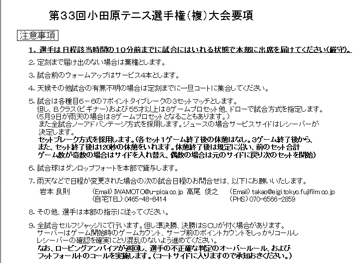 小田原テニス選手権(複) 要項