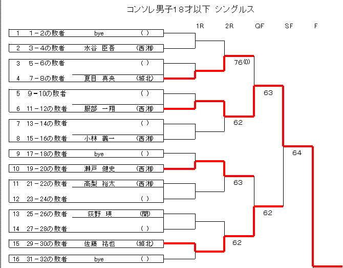 [要項] [日程表] [男子18才以下] [男子16才以下] [男子14才以下] [男子12才以下] [男子コンソレ] [女子18才以下] [女子16才以下] [女子14才以下] [女子12才以下] [女子コンソレ] [団体略称] [会場地図]