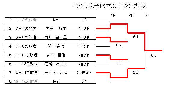 [要項] [日程表] [男子18才以下] [男子16才以下] [男子14才以下] [男子12才以下] [男子コンソレ] [女子18才以下] [女子16才以下] [女子14才以下] [女子12才以下] [女子コンソレ] [団体略称] [会場地図]