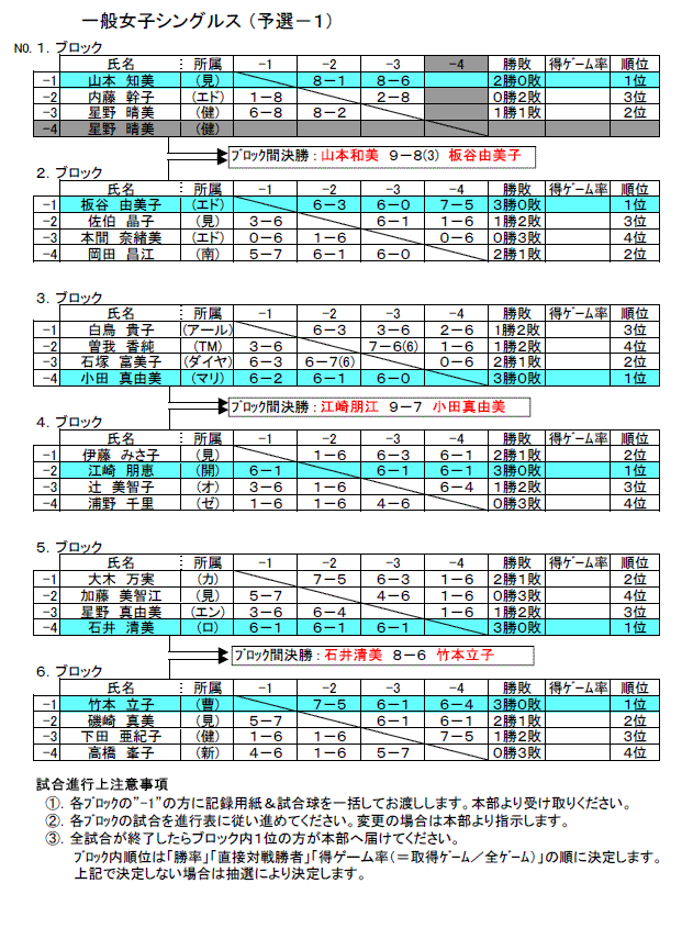 一般女子予選:1−6ブロック