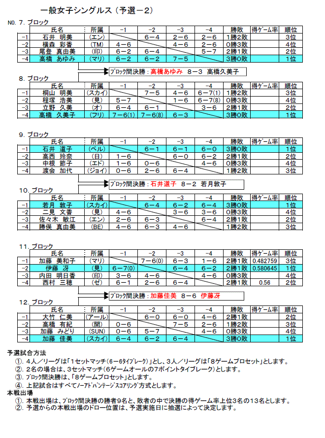 一般女子予選:7−12ブロック