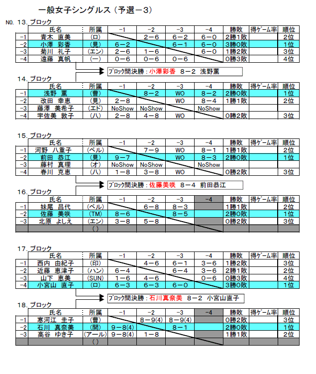 一般女子予選:13−18ブロック