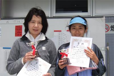 ![]() ↑女子50 準優勝:立野・菊地(左)、優勝:芦谷・森(右) |