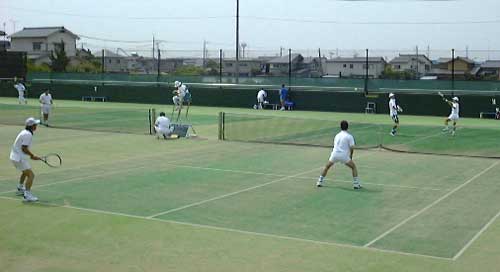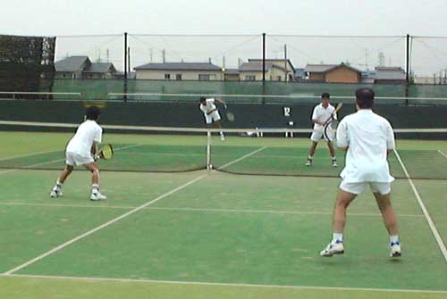 男子45才以上の部で優勝した友野・神保組(手前)。