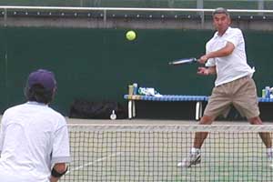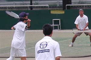 前回のチャンピオン勝俣・上原組の強力なストロークに対抗した。