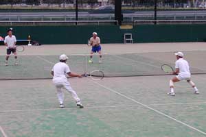 | ともに準決勝を大接戦のフルセットの末勝ち上がった、米谷・加藤組と高橋・岡田組。 準決勝の熱戦はそのまま決勝の第1セットに持ち込まれ、一歩も譲らない攻防をみせた。 しかし、終盤、徐々に高橋選手に疲れによるミスが出始め、6−4で米谷・加藤組が先取。 第2セットに入ると、そのまま米谷・加藤組がペースを捕み、第2セットも6−2でとり、 激戦を制した。 |