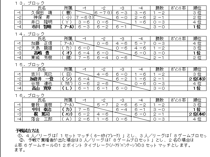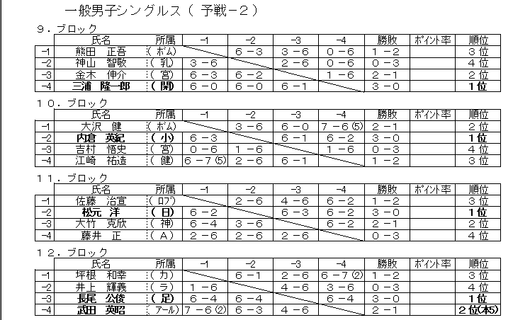 一般男子予選:9−16ブロック