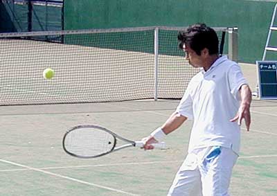 | 決勝は金谷選手と嶋田選手。 金谷選手の攻めのテニスに、嶋田選手が守りで対抗。 一進一退の好ゲームとなった。 第1セットは、金谷選手の攻めが効果的なポイントできまり、 6−4で奪取。 第2セットにはいって、金谷選手が咲きに4ゲームをとってリードするが、 雨脚が強まる中、ここからゲームが取れない。 結局、嶋田選手が守りきって第2セットを6−4で奪い返す。 第2セットに勝負をかけていた金谷選手はここで残念ながらリタイア。 嶋田選手の初優勝がきまった。 | |