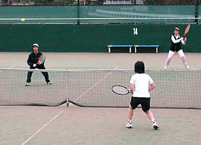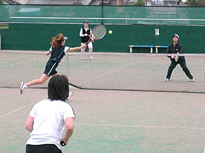 終盤の勝負どころ、ミスをしないテニスで、太田・藤村組が、 追いすがる佐藤・高橋組を8−6で下し、優勝した。