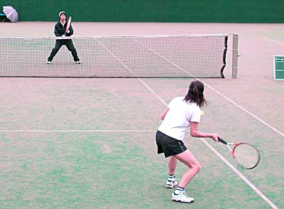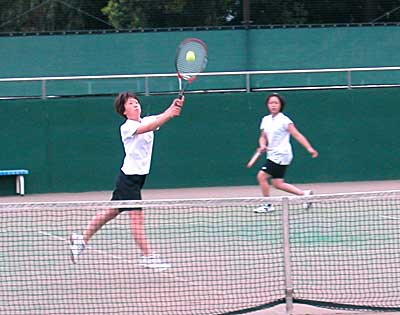 太田・藤村組の、コースをついたストロークとボレーに対し、 佐藤・高橋組は、鋭いボレーと力のあるストロークで対抗。