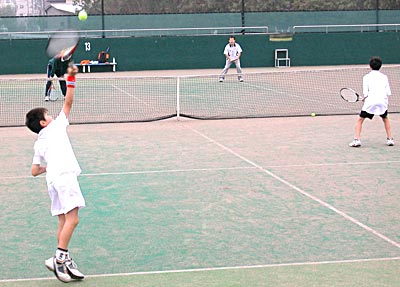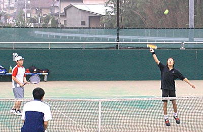 高橋・広瀬組の挑戦を、6−3,6−1で退けた。 広瀬選手は、女子ビギナー優勝の広瀬選手の弟。 姉弟そろっての優勝はならなかった。 | |