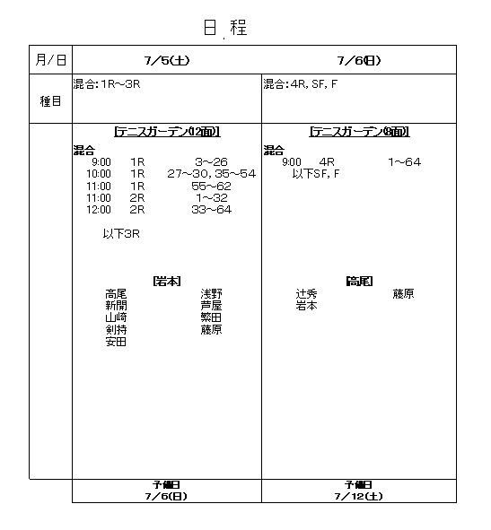 市民大会MIXダブルス(日程表)