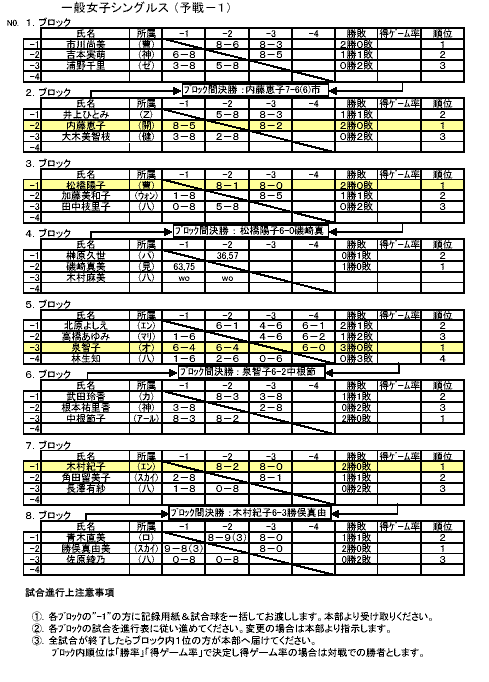 一般女子予選:1−8ブロック