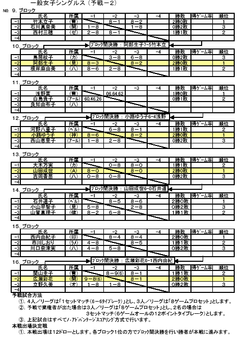 一般女子予選:9−16ブロック