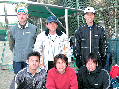 準優勝:クボタ 準決勝のYUASA戦、 2−2で迎えたNo.1の試合は接戦となり、 榊選手がマッチポイントでエースを決めた瞬間、 足に肉離れを起こし倒れこむという壮絶な試合を 制し、クボタが決勝進出。 |