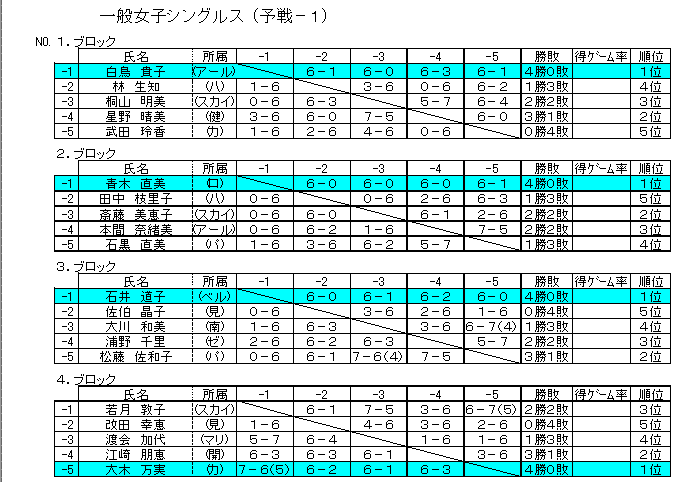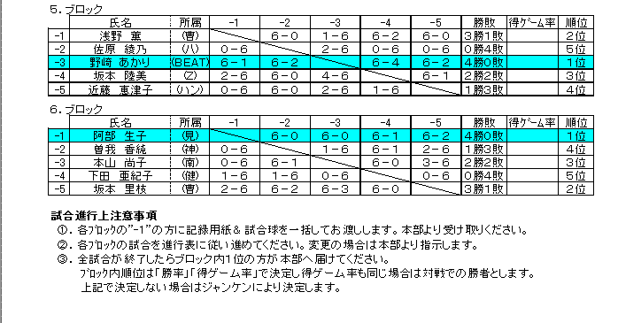 一般女子予選:1−6ブロック