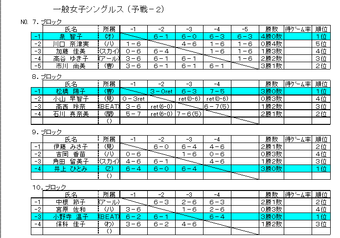 一般女子予選:7−12ブロック