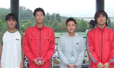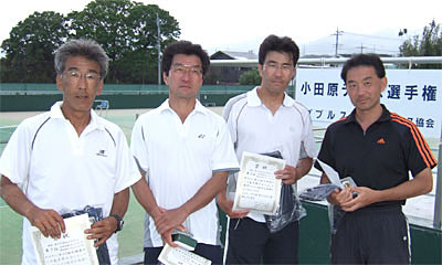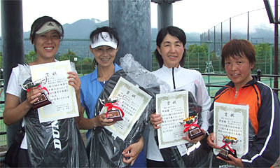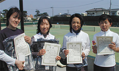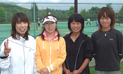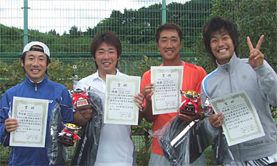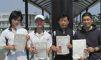 ![]() ↑準優勝:添田・杉崎(両側)、優勝:小野・青木(中央)、 |
