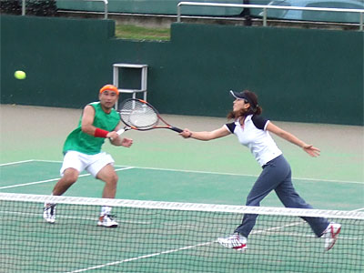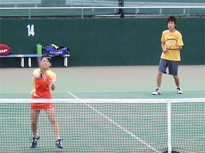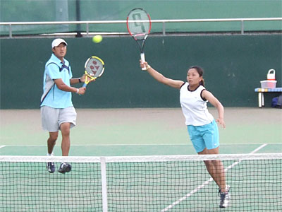 混合ダブルスコンソレは、若手が活躍。松本・吉本組が、思い切りのいいテニスで