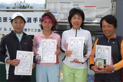 ![]() ↑女子50 準優勝:立野・菊地(左)、優勝:芦谷・森(右) |