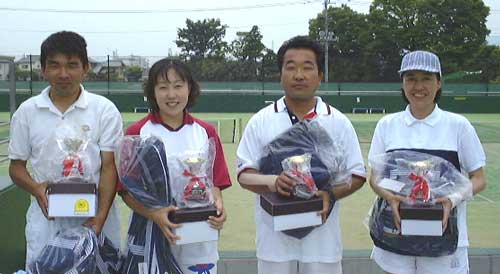 男子45才以上の部で優勝した友野・神保組(手前)。